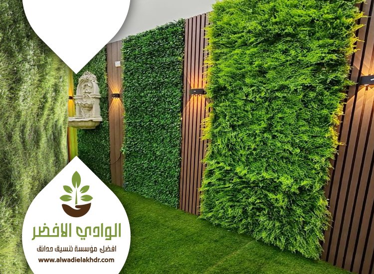 تركيب العشب الصناعي على الجدار بحي الوادي